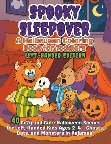 Spooky Sleepover Left-Handed Edition A Halloween Coloring Book for Toddlers: 40 Cozy and Cute Halloween Scenes for Left-Handed Kids Ages 2–4 – Ghosts, Bats, and Monsters in Pajamas!