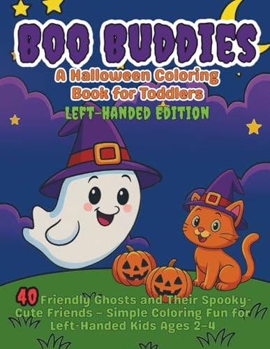 Boo Buddies A Cute Halloween Coloring Book for Toddlers Left-Handed Edition: 40 Friendly Ghosts and Their Spooky-Cute Friends Simple Coloring Fun for Left-Handed Kids Ages 2–4