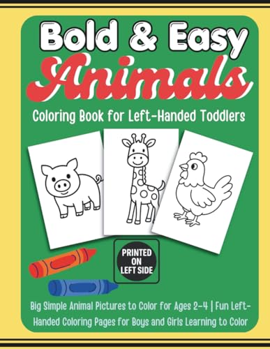 Coloring Book for Left-Handed Toddlers Bold & Easy Animals: Big Simple Animal Pictures to Color for Ages 2–4 | Fun Left-Handed Coloring Pages for Boys and Girls Learning to Color