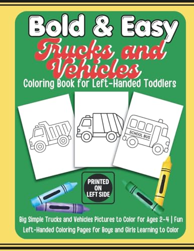 Coloring Book for Left-Handed Toddlers Bold & Easy Trucks and Vehicles: Big Simple Vehicles and Construction Trucks to Color for Ages 2–4 | ... Fun for Boys and Girls Learning to Color
