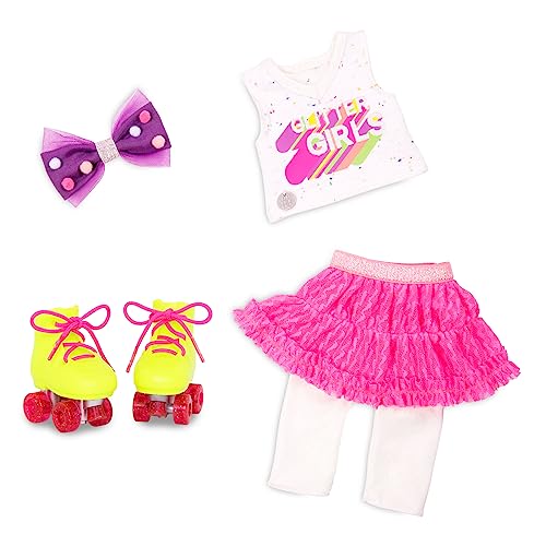 Glitter Girls Deluxe Roller Skating Outfit- Dockkläder 36 cm dockor - kjol, leggings, topp, rullskridskor, rosett (6 delar) leksak från 3 år