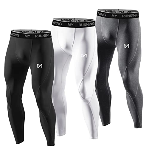 MEETYOO kompressionsbyxor män, sport leggings andningsfunktion fitness strumpbyxor baslager byxor lång, för löpning cykling