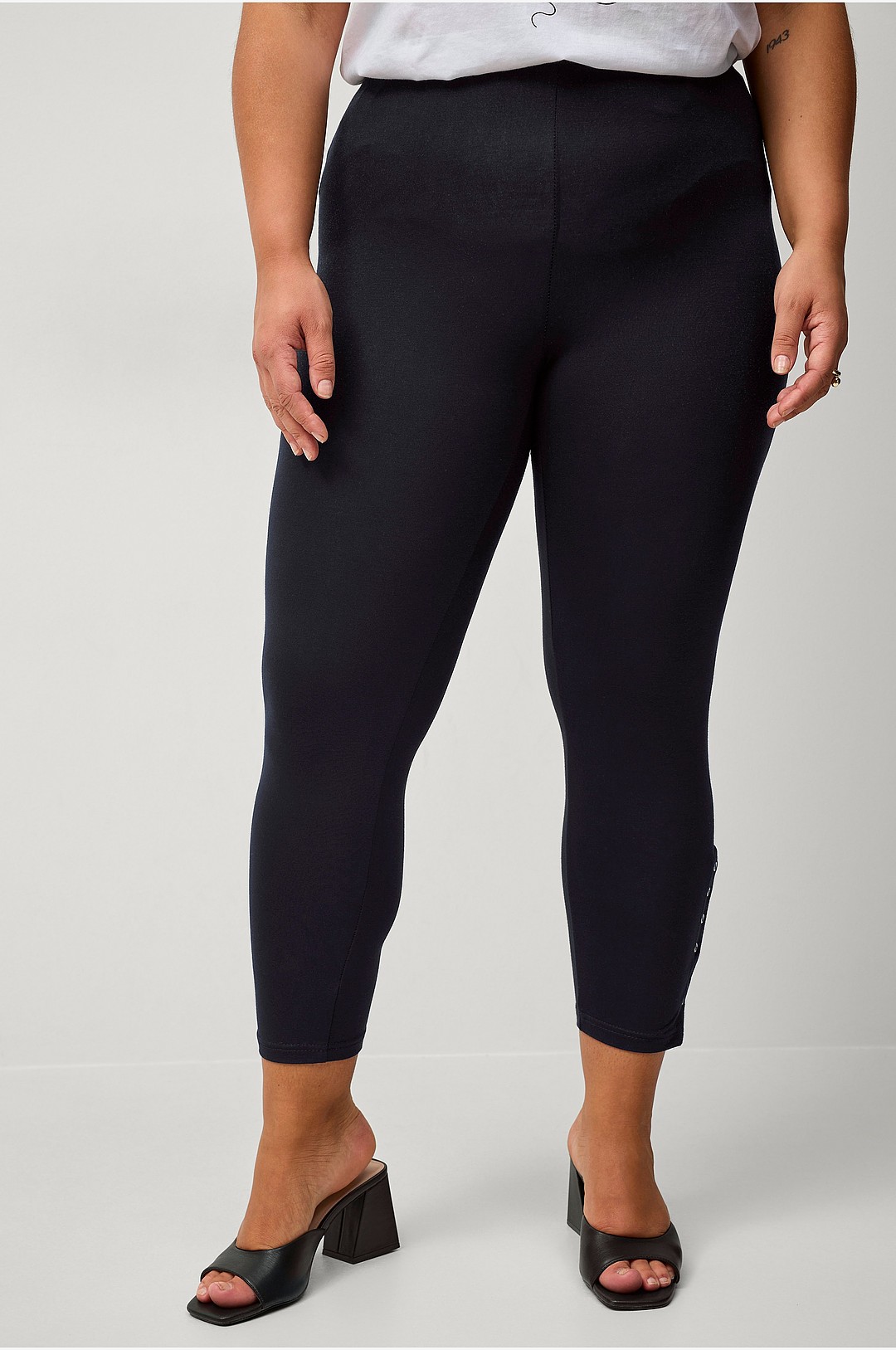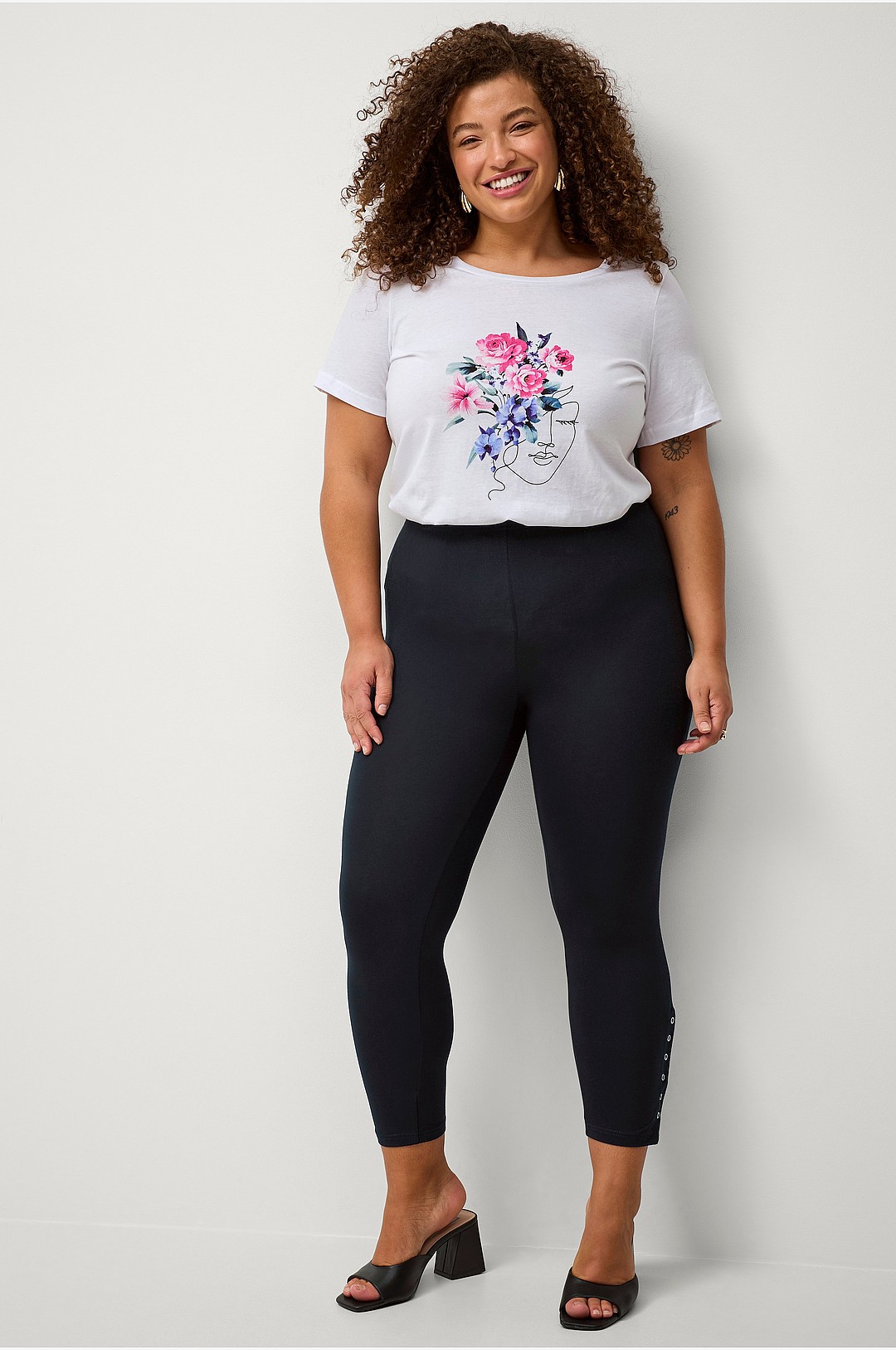Zizzi - Leggings Leggings 3/4 Button - Svart
