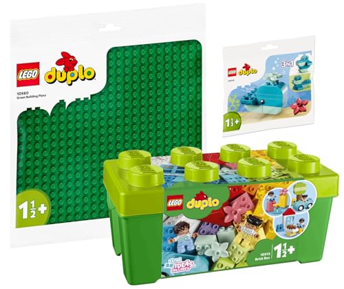 Lego DUPLO 3-delat set: 10913 stenbox, 10980 byggplatta i grönt och 30648 val
