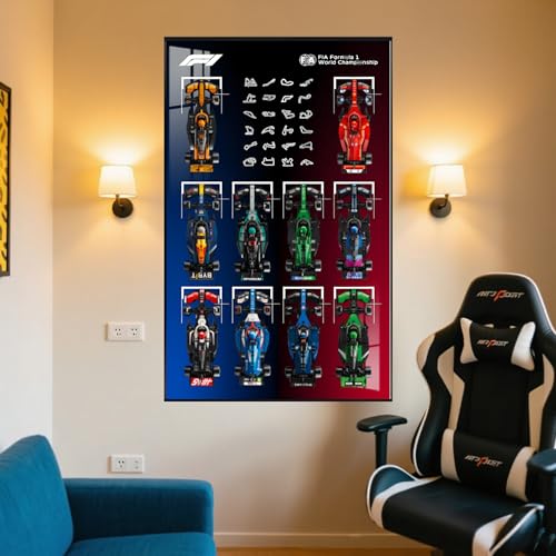 BoHeart Display Väggtavla för Lego Technic Car F1, McLaren Formula 1, 42141, kompatibel med Lego McLaren F1, 50 x 80 cm, väggkonst, sovrum/vardagsrum
