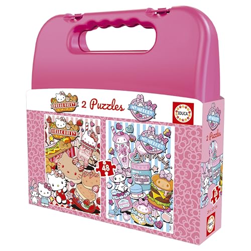 Educa - Hello Kitty & Friends resväska | Uppsättning med 2 pussel för barn med 48 bitar | Rekommenderas att börja 4 5 6 år (20510)