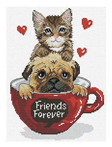 Ladybird Stickset Friends Forever, korsstygnsset ca 17,5 x 24,7 cm, komplett uppsättning för en fyrkantig broderibild, hantverk hobby för vuxna och barn från 8 år