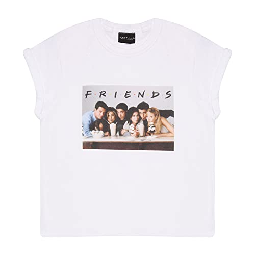 Friends Milkshakes flickor beskuren T-shirt | Officiell produkt | Åldrar 7-16 år, flickor modekläder, magtröja, knytning & tonårsstorlekar, dotter födelsedagspresent idé, Vitt, 10-11 År