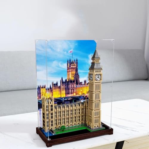 Genomskinligt akryldisplayfodral, för Lego 10253 Big Ben-modell, genomskinlig låda, förvaringsbox, displaybox, kompatibel med 10253-modellen. (endast Displaybox) (svart valnöt)
