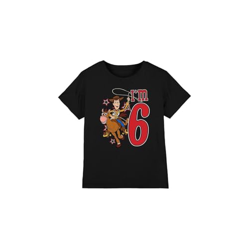 Toy Story Birthday Woody I'm 6 unisex barn t-shirt, svart, 3-4 år, Svart, 3-4 År