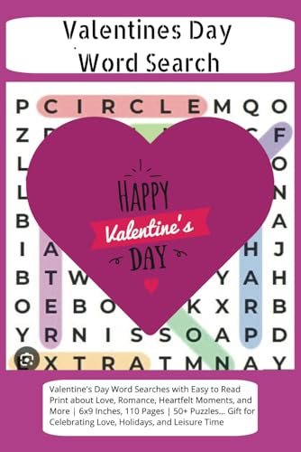 Valentine's Day Word Search Puzzle Book: Easy to Read Print about Romance, Friends, Love and More | 6x9 inches, 110 pages | 50+ Puzzles ... Gift for Vacations, Holidays, and Leisure Time
