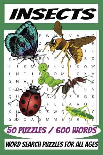 Insects Word Search Puzle Book: Word Searches with Easy to Read Print about Insects, Bug Behaviors, Insect Habitats, and More / 6x9 inches, 100 pages ... for Vacations, Holidays, and Leisure Time