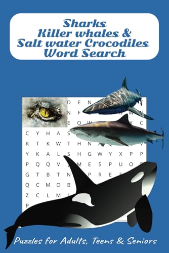 Sharks, Killer whales and Salt water Crocodiles Word Search Puzzle Book: Word searches with easy to read print about Sharks, Killer whales, Salt water ... puzzles... Gifts, Travelling and Leisure Time