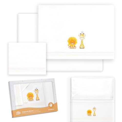 Interbaby - Lakan för baby i bomull, för minispjälsäng, giraff, lejon, 3 st. set med bäddsoffa + bänkskiva + örngott