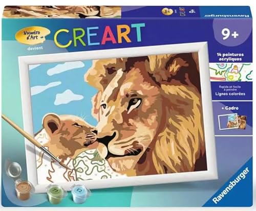 Ravensburger CreArt Kids 18 x 24 cm - Konstnummer - Lejon och hennes bebis - Måla efter nummer-kit - Från 7 år - 25968
