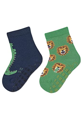 Sterntaler Baby pojkar kakel strumpor baby ABS strumpor dubbelpack krokodil och lejon – kakel halkfria strumpor baby – av bomull – marinblå, 18, marinblå