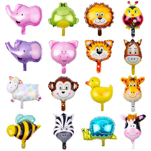 OSDUE Skogsdjur ballonger skog festtillbehör, 16 st skogsdjur födelsedagsdekorationer, elefant, lejon, tiger, giraff, ko, söta ballonger kit för pojke flicka baby shower födelsedagstillbehör