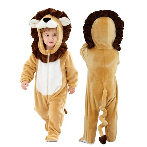Doladola Unisex Baby Onesies Djur Tecknad Katt Jumpsuits Småbarn Hooded Sparkdräkt(3-4 år,Lejon)