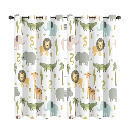 MESHELLY Baby safari djur mörkläggningsgardiner 132 cm x 163 cm för pojke sovrum genomföring par barn skog djungel lejon elefant konst tryckta gardiner för barnkammare vardagsrum fönsterbehandling tyg