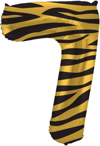 Folat 64167 ballong födelsedag siffra 7 tiger chic lejon brun svart 86 cm helium dekoration födelsedagsdekoration, ballong nummer, färgglad