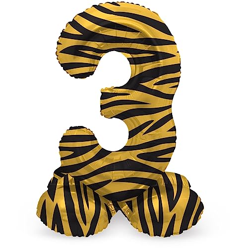 Folat 63953 ballong födelsedag stående siffra 3 tiger chic lejon brun svart 72 cm dekoration födelsedagsdekoration, ballong nummer, inget helium krävs, färgglad