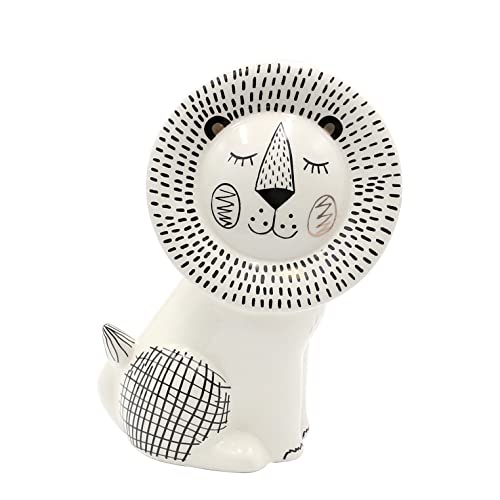 Dekohelden24 Modern dekoration lejon av keramik vit, mått B/H/D ca 15 x 19 x 9 cm, svartvit, 19 cm