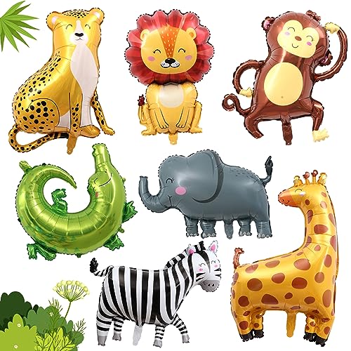 Skogsdjur födelsedag, folieballong, 7 stycken, ballongdjur, tiger, lejon, apa, zebra, giraff, heliumballonger, skogsdjur, födelsedag, dekoration, barnfödelsedag, dekoration för barn, pojkar, flickor