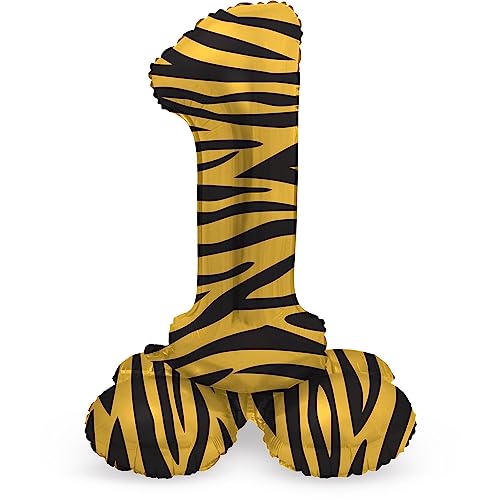 Folat 64751 ballong födelsedag stående siffra 1 tiger chic lejon brun svart 41 cm dekoration födelsedagsdekoration, ballongnummer, ingen helium krävs, färgglad