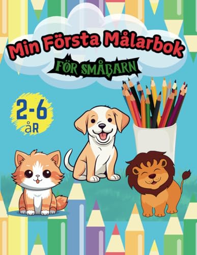 Min Första Målarbok för Småbarn: Roliga och enkla målarbok för småbarn och barn med lejon, katt, hund, fjäril, zebra, elefant, pingvin och mer / Färglägga varelser och ord.