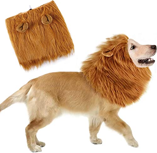 LATRAT Lejonmanen för hundar, örat peruk justerbar, lejon förklädnad hund cosplay kostym öron för hund katt Halloween fest jul klä upp brun