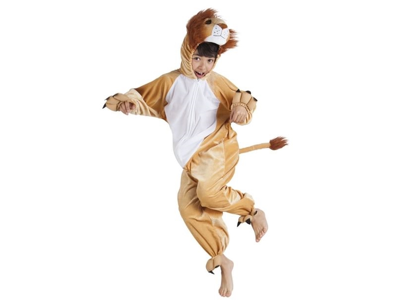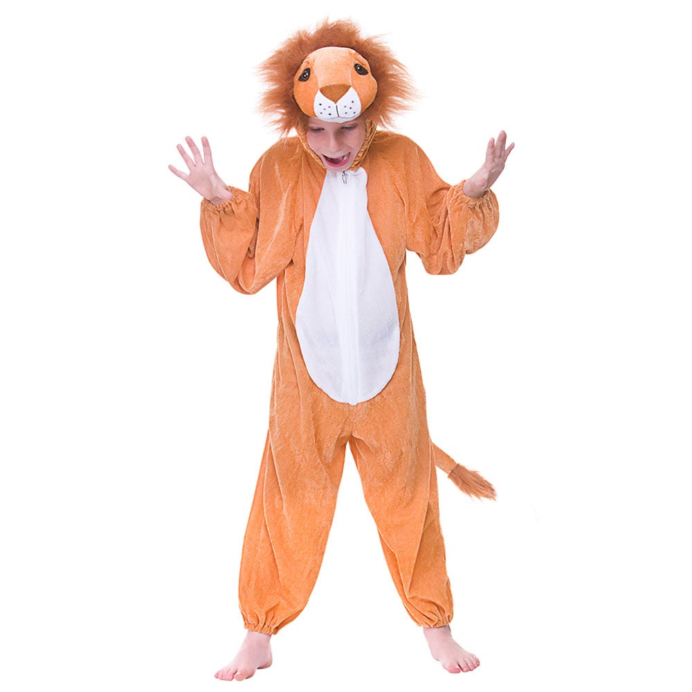 Barn lejondräkt – lejonoverall och man huvudbonad – djur maskeraddräkt för bokdag