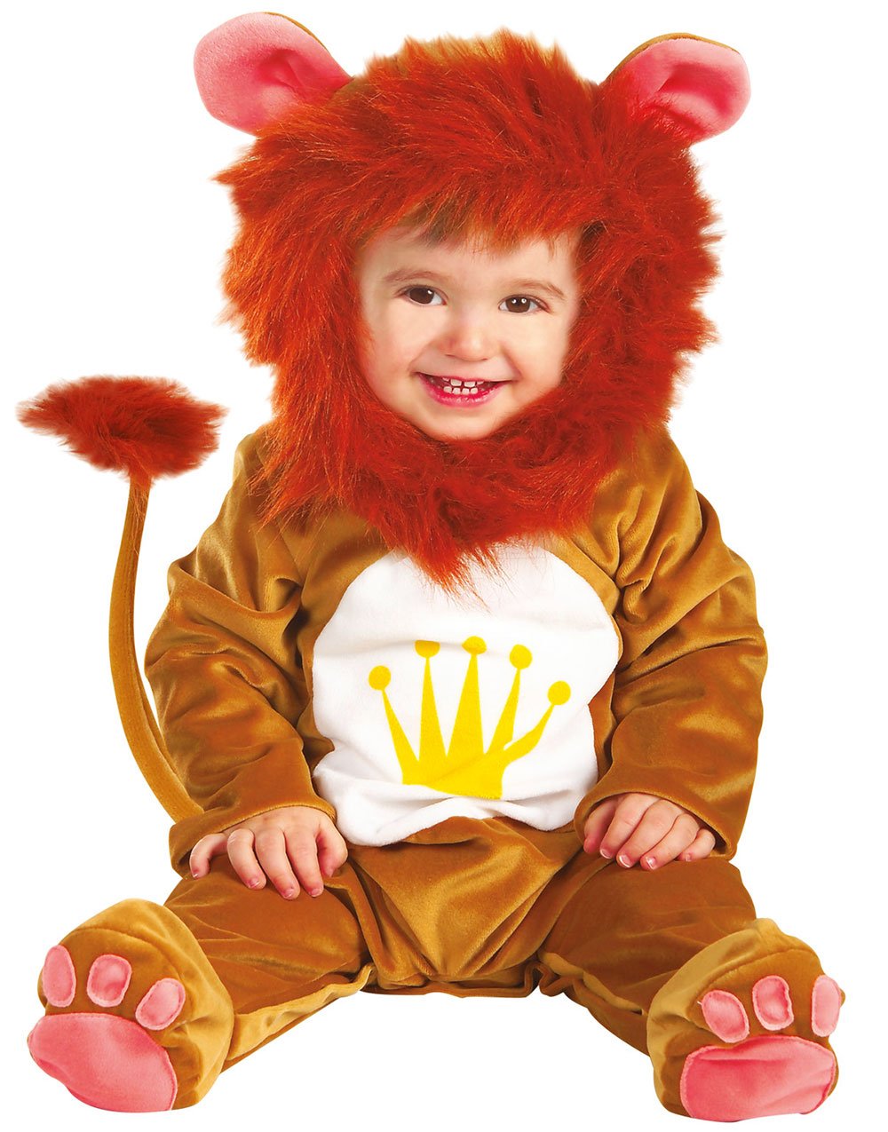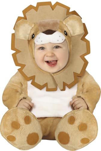 FIESTAS GUIRCA | Baby lejondräkt (12-18/månader) - Inkluderar huva, jumpsuit och fötter - djurdräkter för barnfester, Halloween och karneval, perfekt för pojkar och flickor - brun