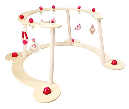 Hess Träleksak 13392 – lärapparat och lekbåge, serie hästare, rosa, babylekanordning med många färgglada lekelement, av bokträ
