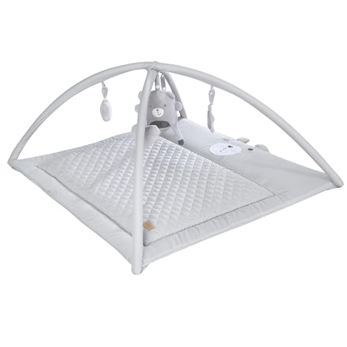 roba 2-i-1 Lekmatta ”roba Style” med lekbåge + 5 element – Kan användas som skötbädd – 85 x 75 cm – För baby från födseln – Silvergrå