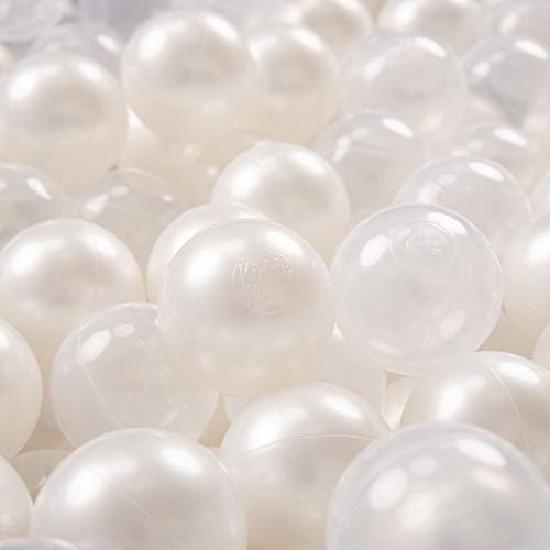 KiddyMoon 200/6 cm barnbollar för bollar bad lekbollar baby plastbollar tillverkad i EU, pärla/transparent