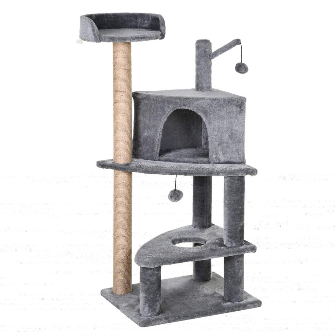Grå Kattträd 4-Vånings med Lekbollar och Sisal