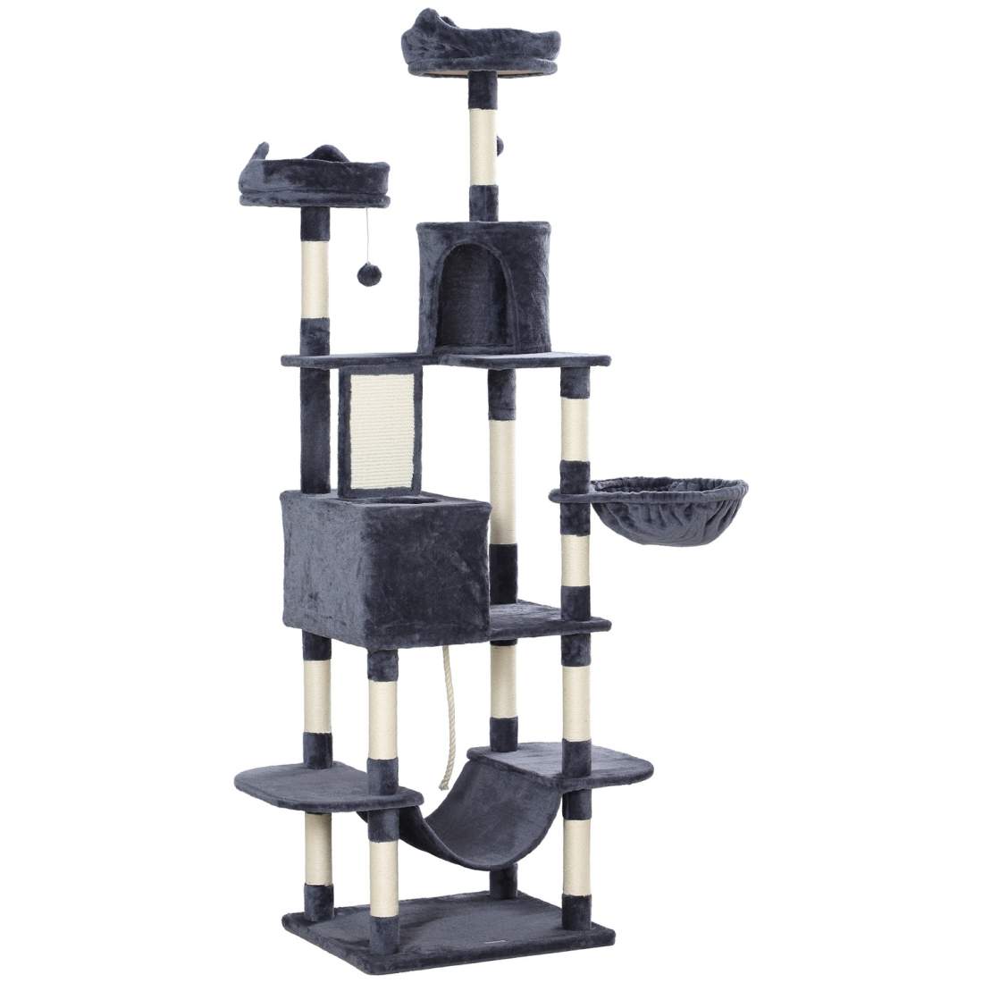 Kattträd 206 cm katttorn med grotta, 2 lekbollar, sisalstolpar, plattform för stora katter, mörkgrå