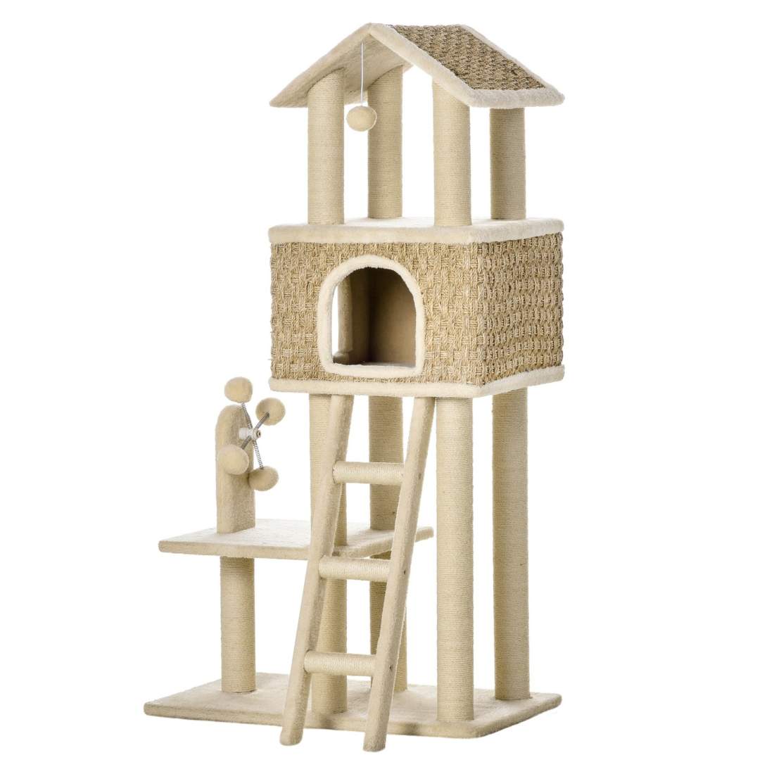 Stort Kattträd 130cm med Grotta & Lekbollar
