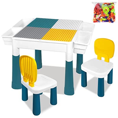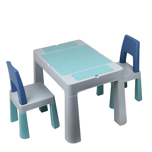TRMLBE Barnbord med 2 stolar, barnstolsgrupp, barnbord, stol, set, lekbord, byggstensbord, multifunktionellt med förvaringsutrymme och byggstenar, aktivitetsbord, målbord för pojkar och flickor