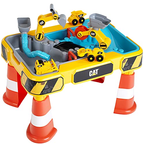 Theo Klein 3208 Caterpillar Sand-och-vatten-lekbord I Två pooler med hjul- och traktorgrävare, bro, rör, proppar och mycket mer. I Mått: 64 cm x 48 cm x 40 cm I Leksaker för barn över 18 månader
