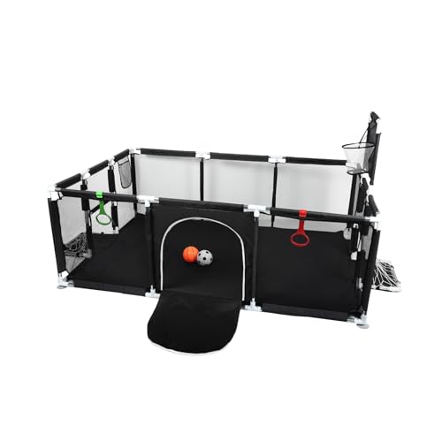 homewell 180 x 120 cm lekhage, lekhage baby med fotboll, basket, luftpump, utomhusflikar och sugkoppar, lekar, barnlekhage med dragkedja (svart)
