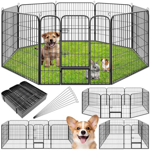 COSTWAY 8-delad 100 x 80 cm valplekhage, valpstaket, valpbur, djur, lekhage, hundinhägnad, avspärrningsgaller med låsbar dörr, för hund, katt och kanin, svart