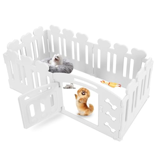 Valppipa 60 cm hög, lekhage hund 7 + 1 tallrikar, plast valplekhage, hopfällbart hundgaller, väderbeständigt hundstaket med grind, inkl. sugkoppar och markankare, hundbur för hem och utomhus, vit