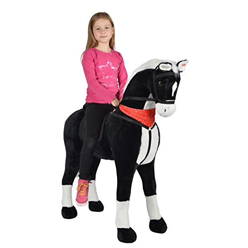 Pink Papaya Gigantisk XXL-lekhäst Amadeus för barn, 125 cm, plyschhäst i nästan naturlig storlek, perfekt för barn att rida på – stående häst som klarar upp till 100 kg, med ljud