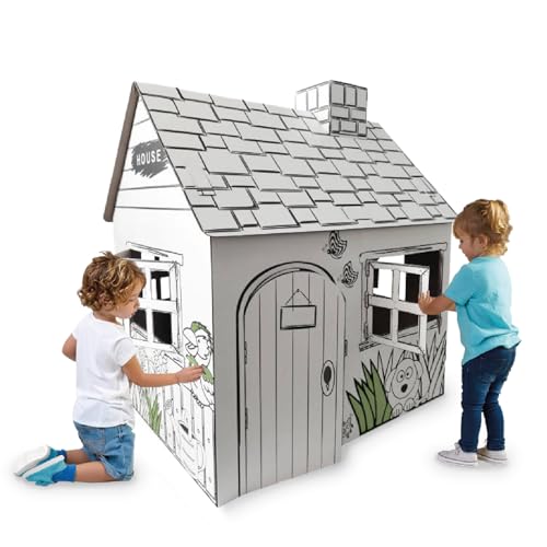 Buddy Baby PaintHome Lekhus i kartong för barn, stor storlek, för målning och färgning och lek, ecohouse, lätt att montera för barn från 2–3 år