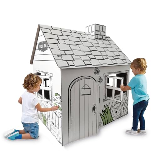 FEBER - Lekhus av kartong för barn, stor storlek, målning, färg och lek, med roliga klistermärken, ecohouse för barn från 3 år, berömd (FEB06000)