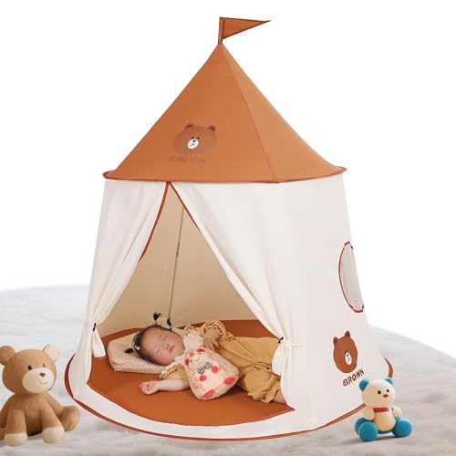 Lektält barntält, lektält för barn, prinsessa prins slottält, bärbart popup indiantält, trädgårdshus tippi tält, barnrum lekhus, födelsedag julklapp (brun björn)