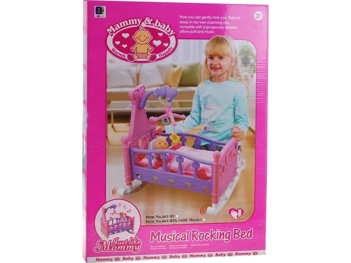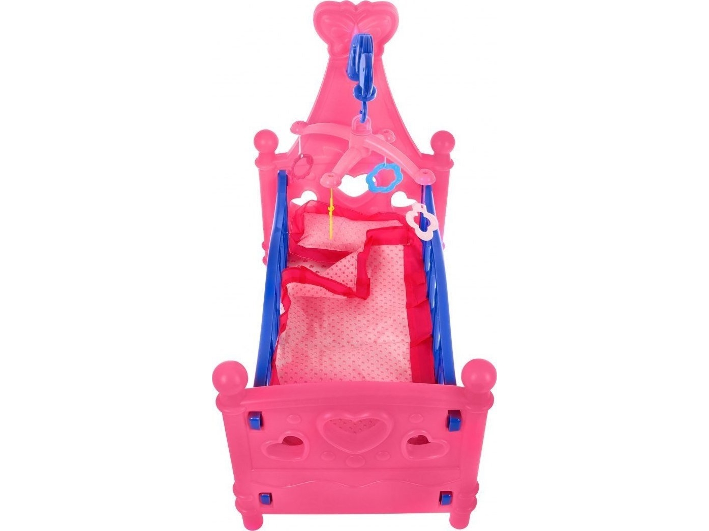 Spjälsäng 2-I-1 Dockvagga För Barn 3+ Karusell Med Ljud + Sängkläder För Dockor + Lekhus