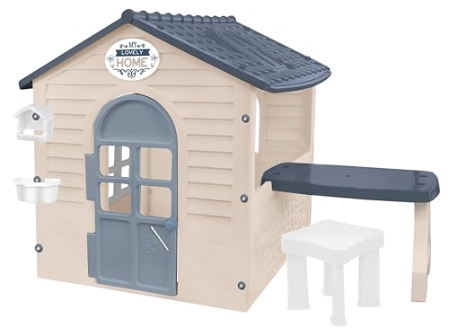 Mochtoys Lekhus för barn, inomhus och utomhus, lekhus med bord och pall, 175 x 120 x 120,5 cm