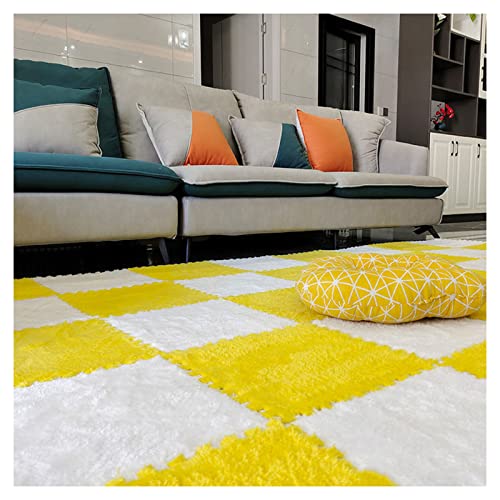 10 Stycken Sammankopplande Mattplattor, Fyrkantiga Golvmattor I Plyschskum, Sammankopplande Fluffig Plysch Pussel Lekmatta Med Kant, 10 Plattor/10 Kvm, 12x12 Tum(Color:Gul+vit)